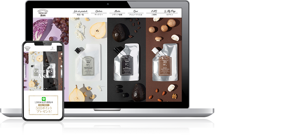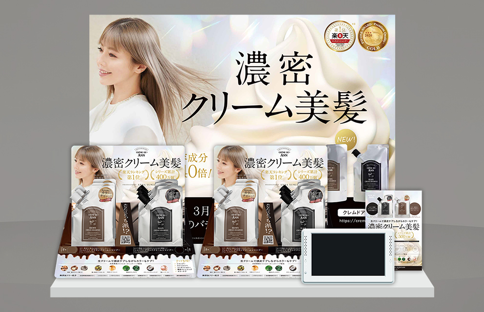 2018年誕生のヘアケアブランドの立ち上げから携わらせていただき、ロゴ・サイト・商品パッケージ・駅看板・商品撮影ディレクションなど、トータルでデザインさせていただきました。ブランドの世界観を視覚的に統一し、商品コンセプトがより強く伝わるよう細部まで設計。特にナチュラルかつ上質なイメージを重視し、ターゲット層に響く洗練されたビジュアルに仕上げています。複数のクリエイティブを一貫して制作することで、ユーザーの記憶に残るブランディングを実現しました。