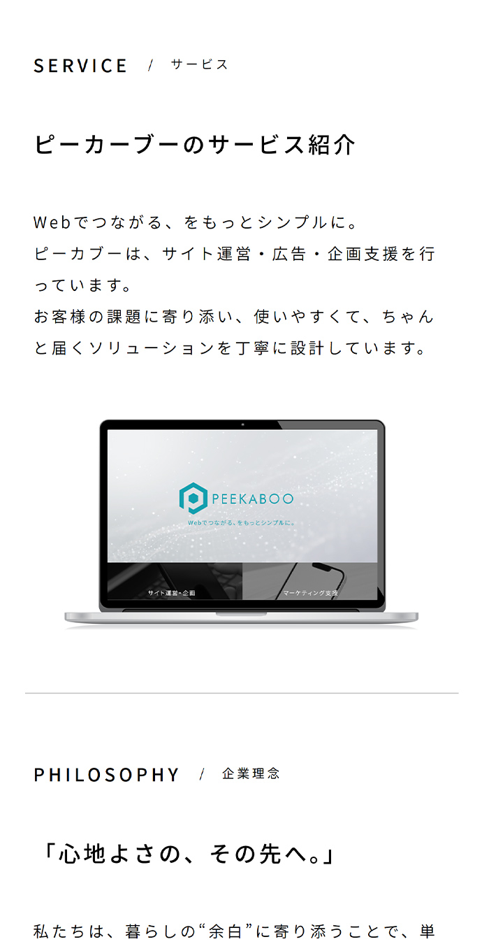 最短3日納品のデザインロールモデルです。CTAまでの導線は極力シンプルに整理し、余計な装飾や要素をそぎ落とすことで、ユーザーの目的達成を最優先に設計。モバイル閲覧時にも視認性が高く、情報がスムーズに伝わる構成に仕上げています。企業の第一印象を決めるコーポレートサイトとして、スピード・機能性・美しさを高い水準で両立した一例です。